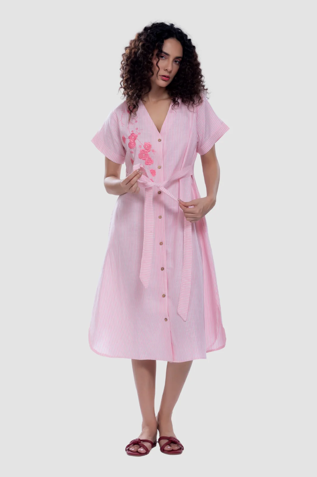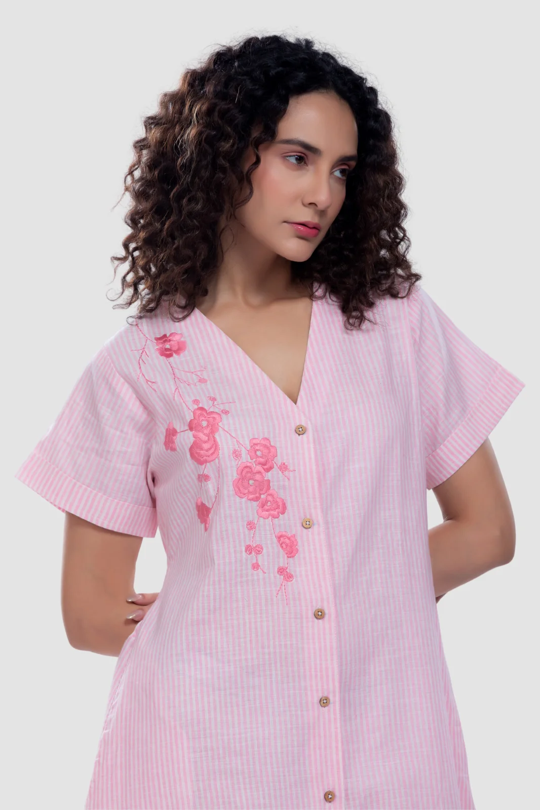 BLUSH – Cotton Linen Shirt Dress with Embroidered Bodice