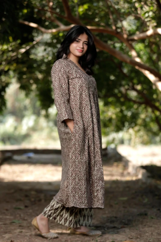 Muddy Taupe – Cotton Long coordinated Kurti Pant set