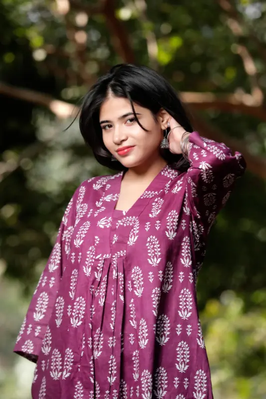 Mulberry Muse – Cotton Long coordinated Kurti Pant set
